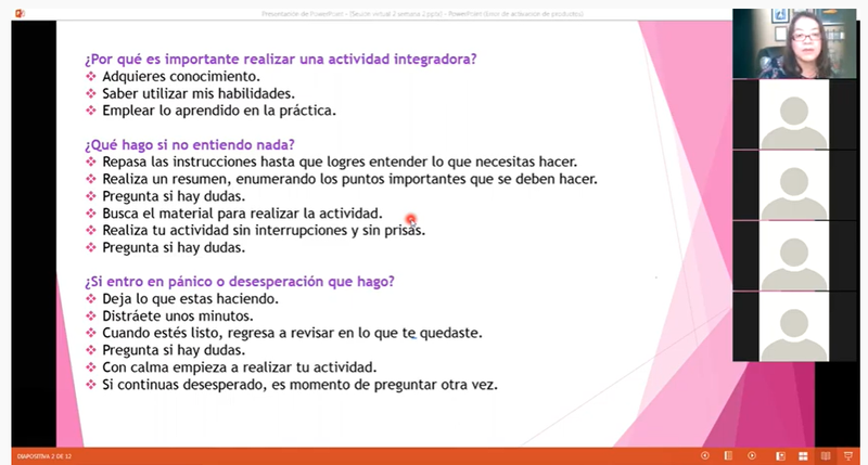 Segunda Sesión síncrona de la semana 2 del grupo:M1C4G20-092 prepa en línea SEP.